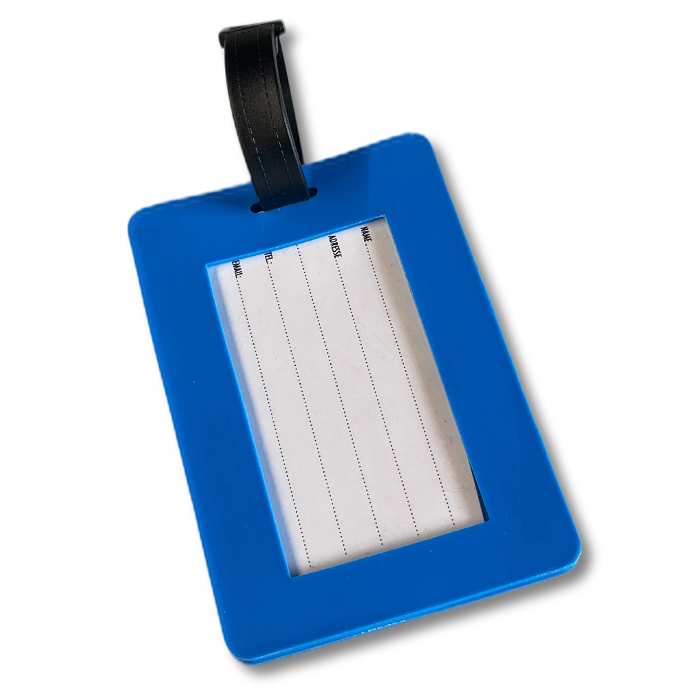 Dein persönlicher Begleiter auf Reisen. Mit diesem blau-weiĂen AnhĂ€nger erkennst Du Deinen Koffer sofort!