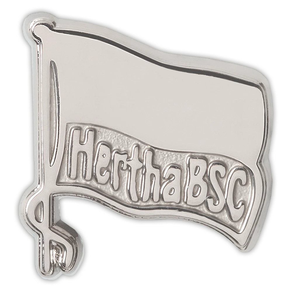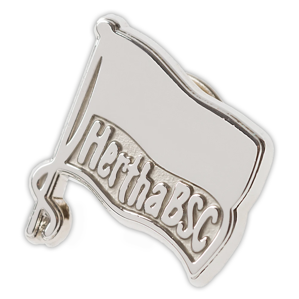 Der Klassiker unter den Pins ist dieser Pin mit der Hertha-Fahne. Zur Befestigung des Pins dient ein Schmetterlingsverschluss auf der RĂŒckseite.