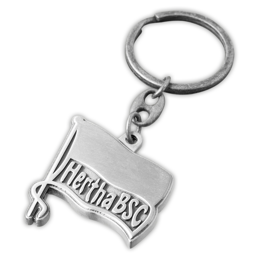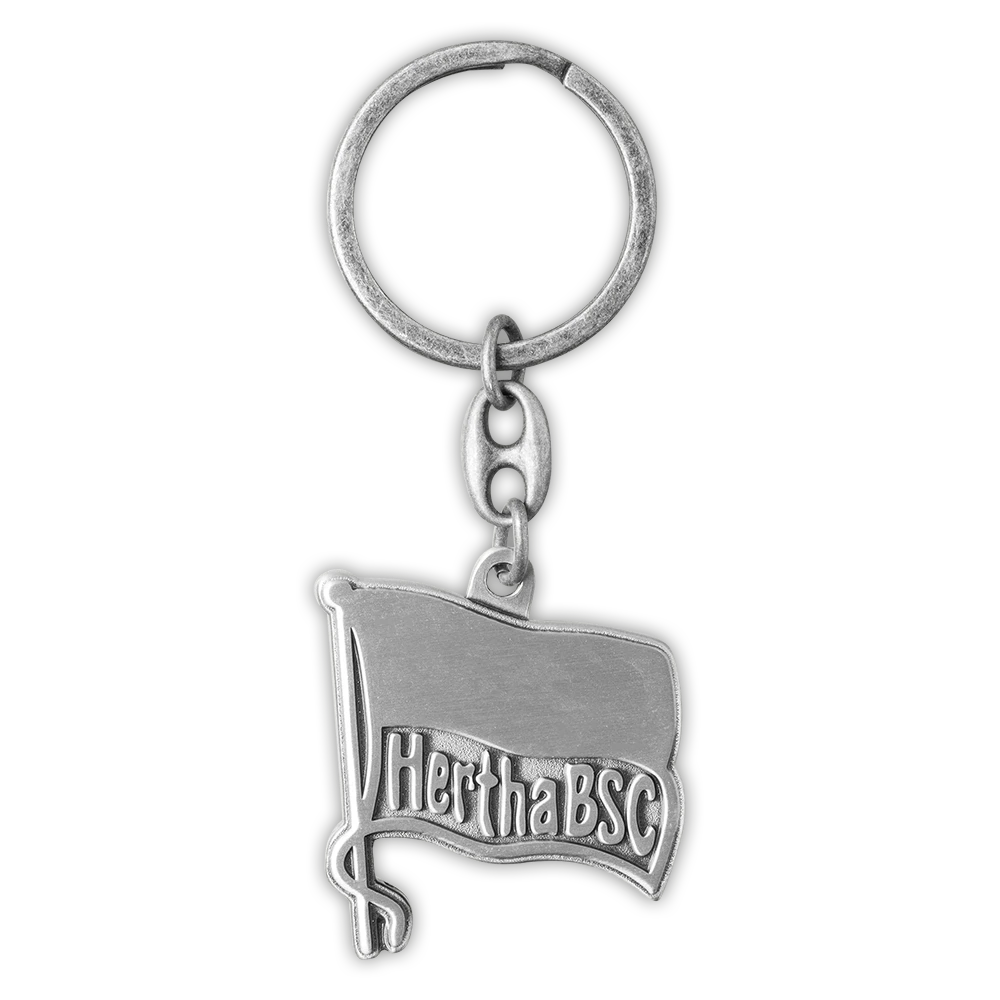 Schlichter Schlüsselanhänger mit Hertha BSC-Fahne aus Metall.