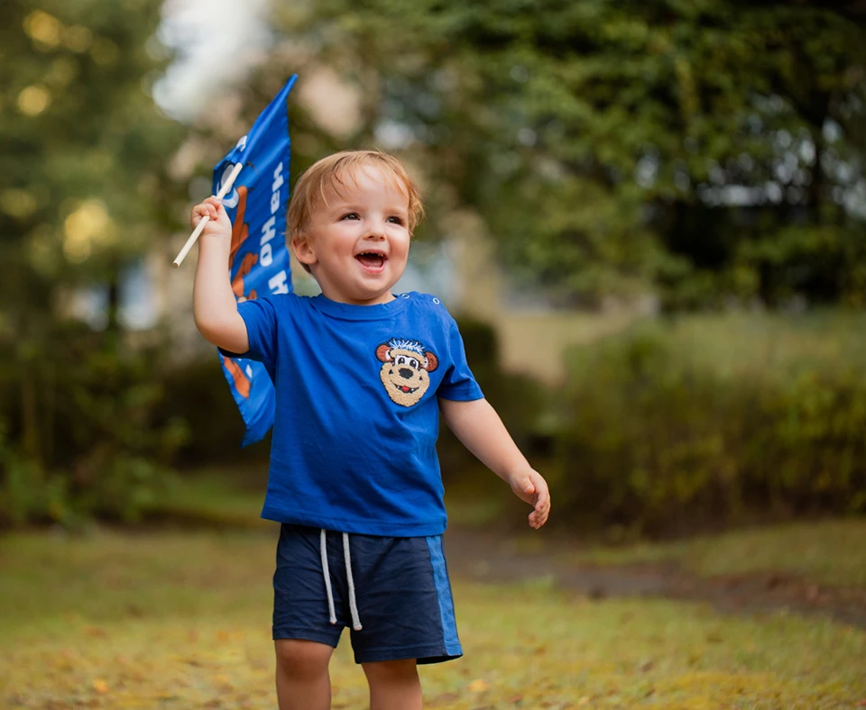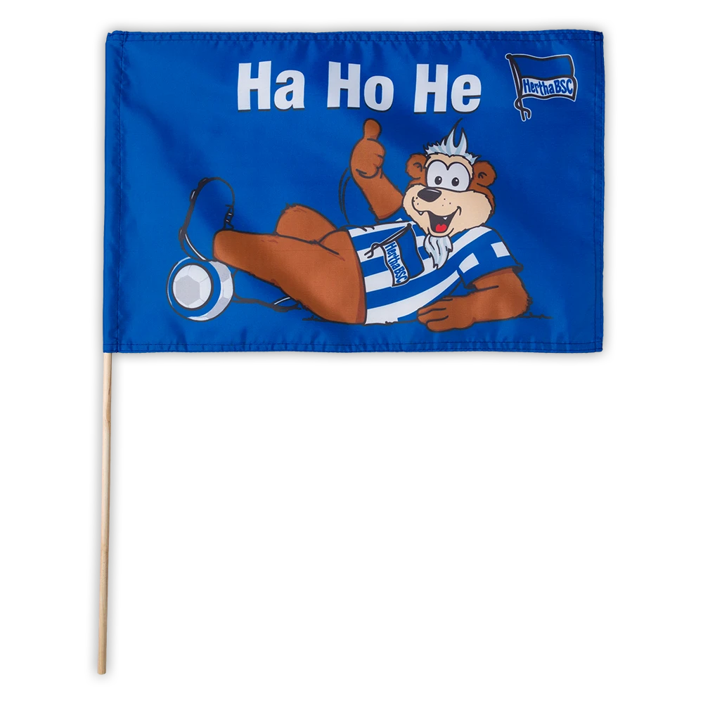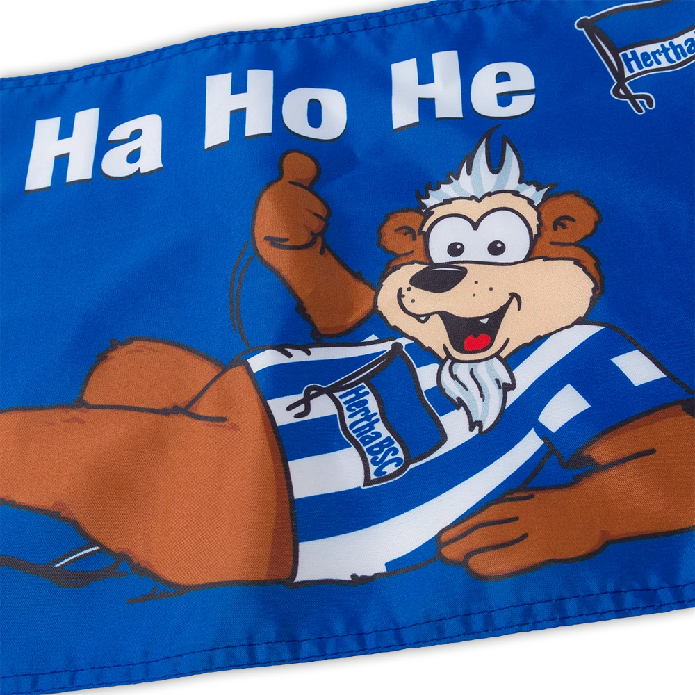 Fahne mit Herthinho Konterfei und dem Schriftzug Ha Ho He.