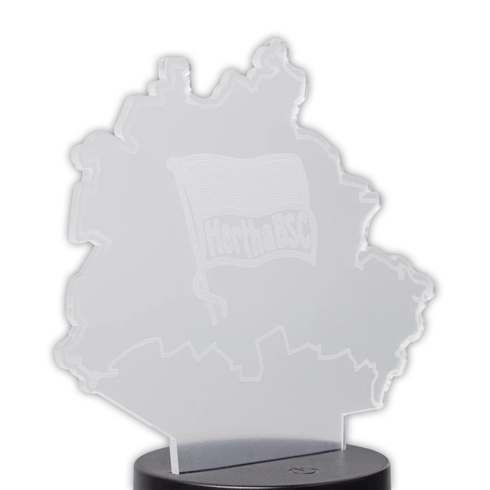 Egal ob stylisches Dekolicht oder Nachtlicht für das Kinderzimmer – mit diesem LED Licht erstrahlt dein Raum im wunderschönen Hertha-Blau. Ideal zum Verschenken oder für den eigenen Gebrauch. Dies ist dein einzigartiges und charmantes LED-Licht. Über eine 2D-Acrylplatte kannst du das unglaubliche 3D-Muster unserer Berlin Karte und den Beleuchtungseffekt genießen. Ein visuelles Erlebnis der Extraklasse.