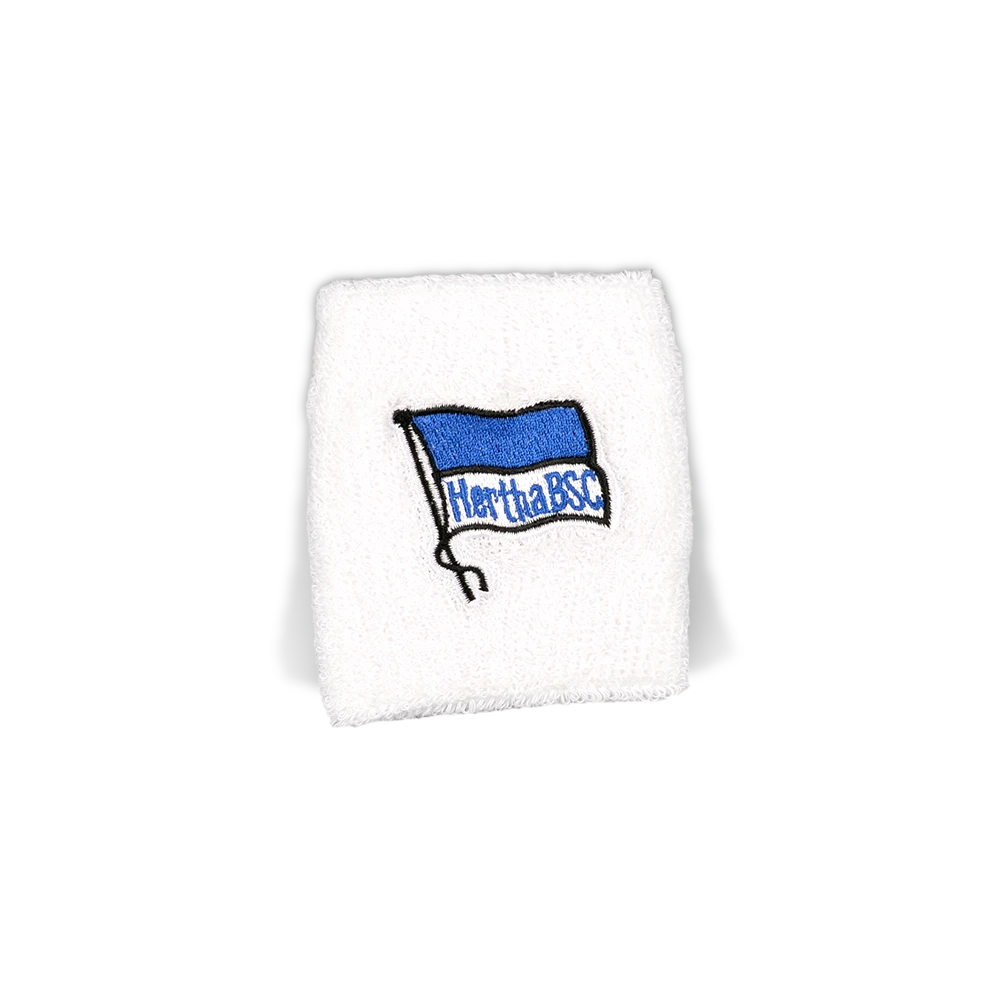 Zwei elastische, waschbare Qualitäts-Schweißbänder in blau und weiß.