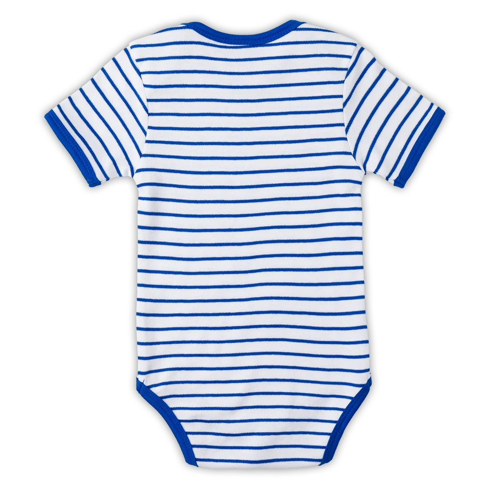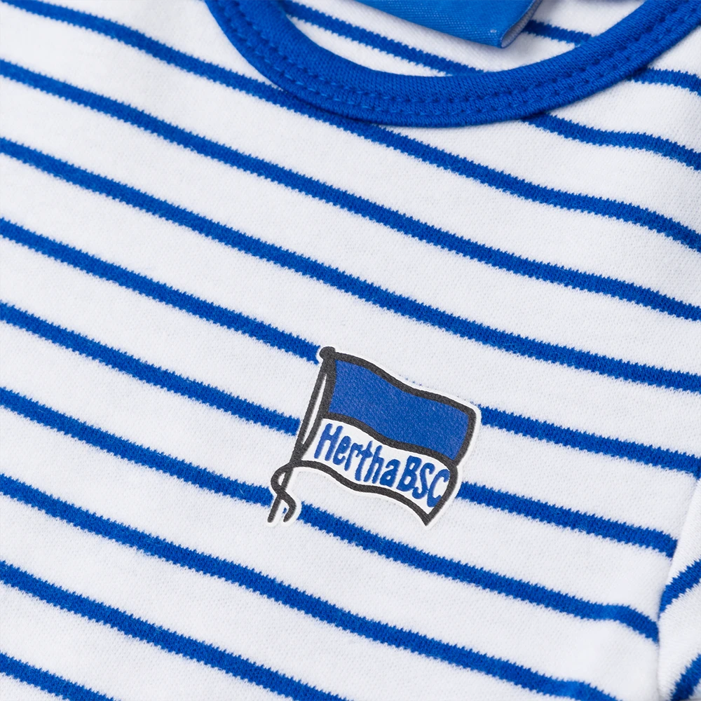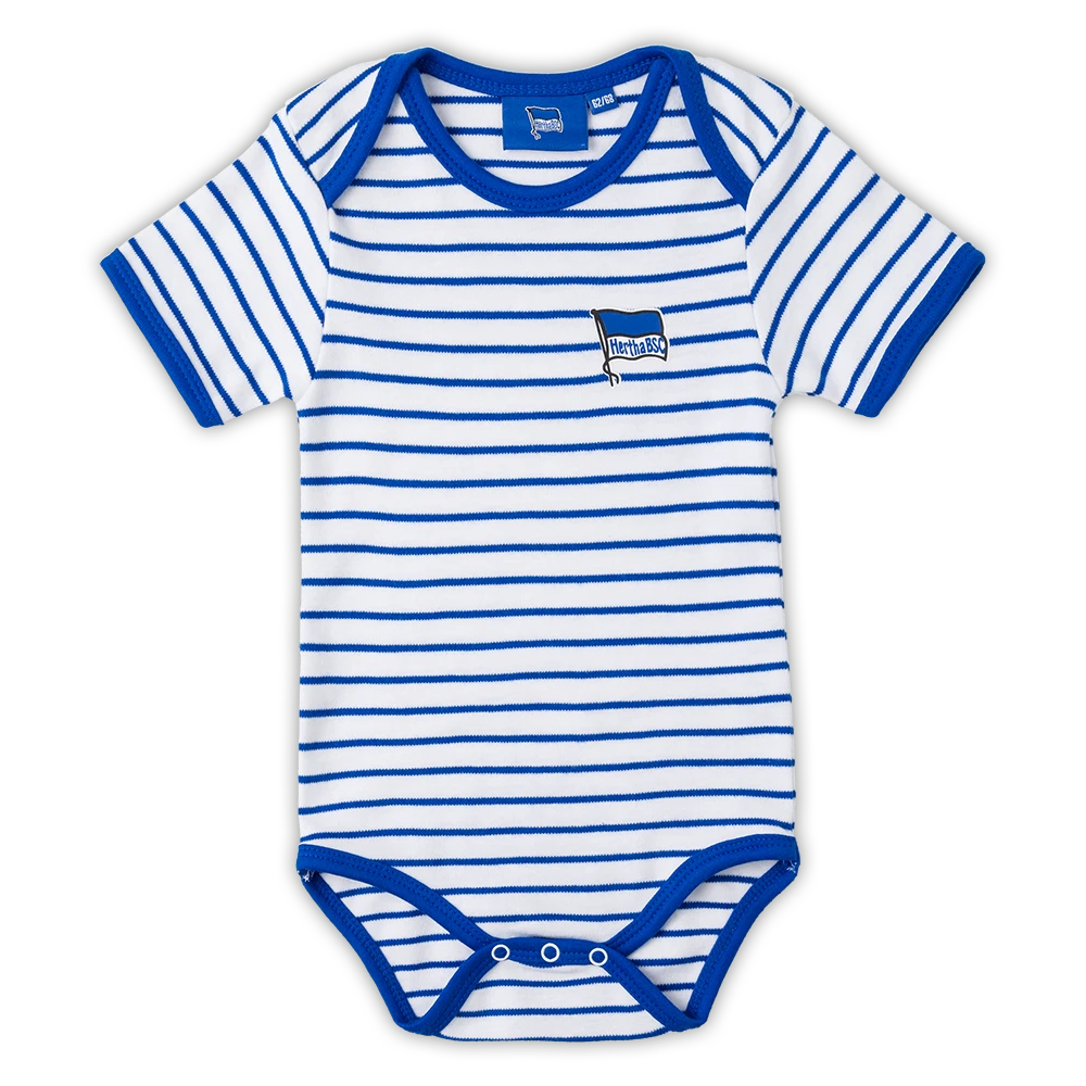 Fühlt sich gut auf der Haut an! Body in Blau mit paspeliertem Schlupfkragen im Streifen-Muster.