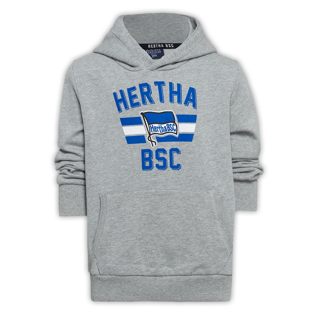 Grauer Kapuzenpullover für Kinder mit Hertha BSC Aufdruck.