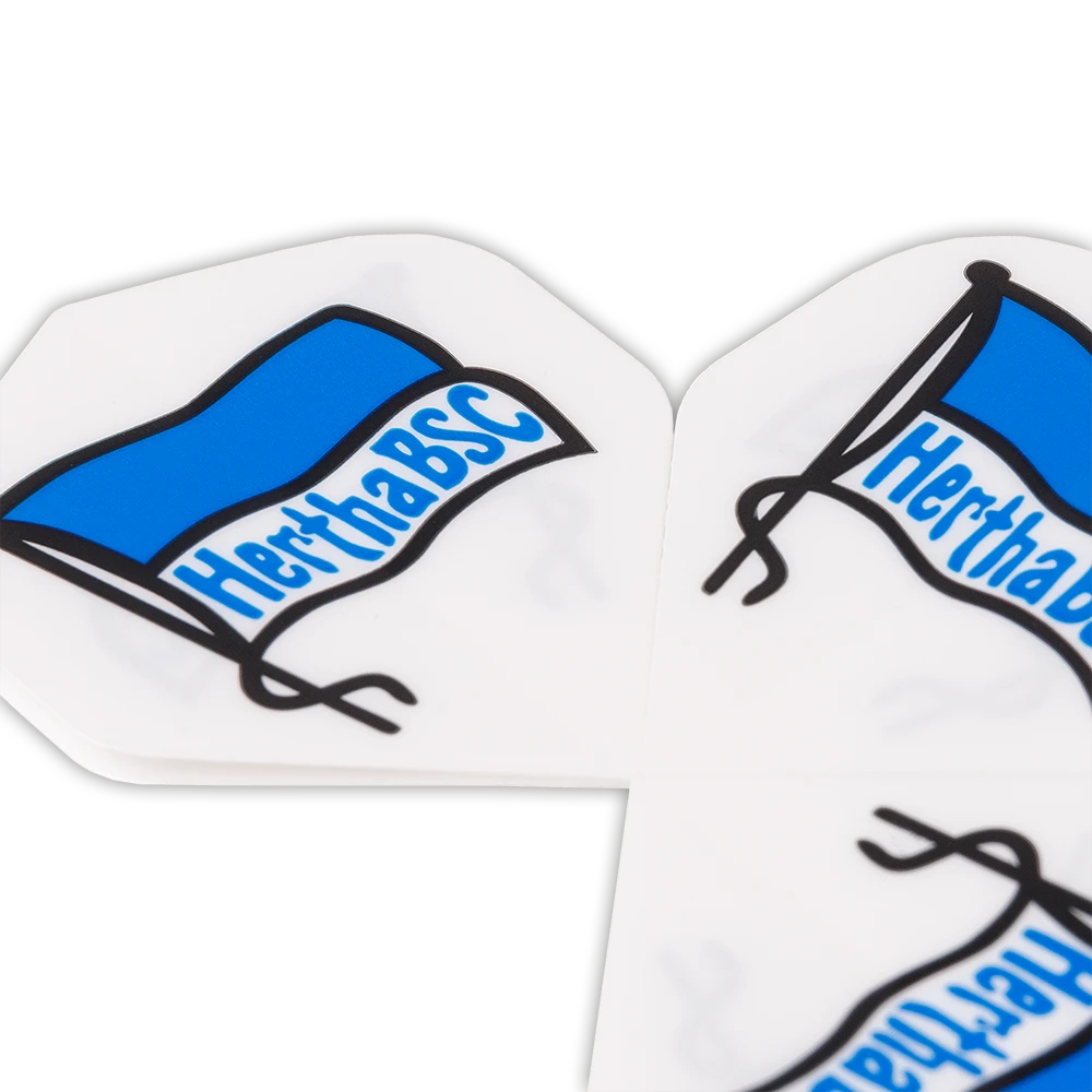 Die hochwertigen Hertha BSC Dart Flights in der Standard Form bestehen aus 100 Micron starkem Kunststoff. Diese langlebigen und robusten Darts Flights sorgen mit ihrem einzigartigen Design fĂŒr eine atemberaubende Optik.Â