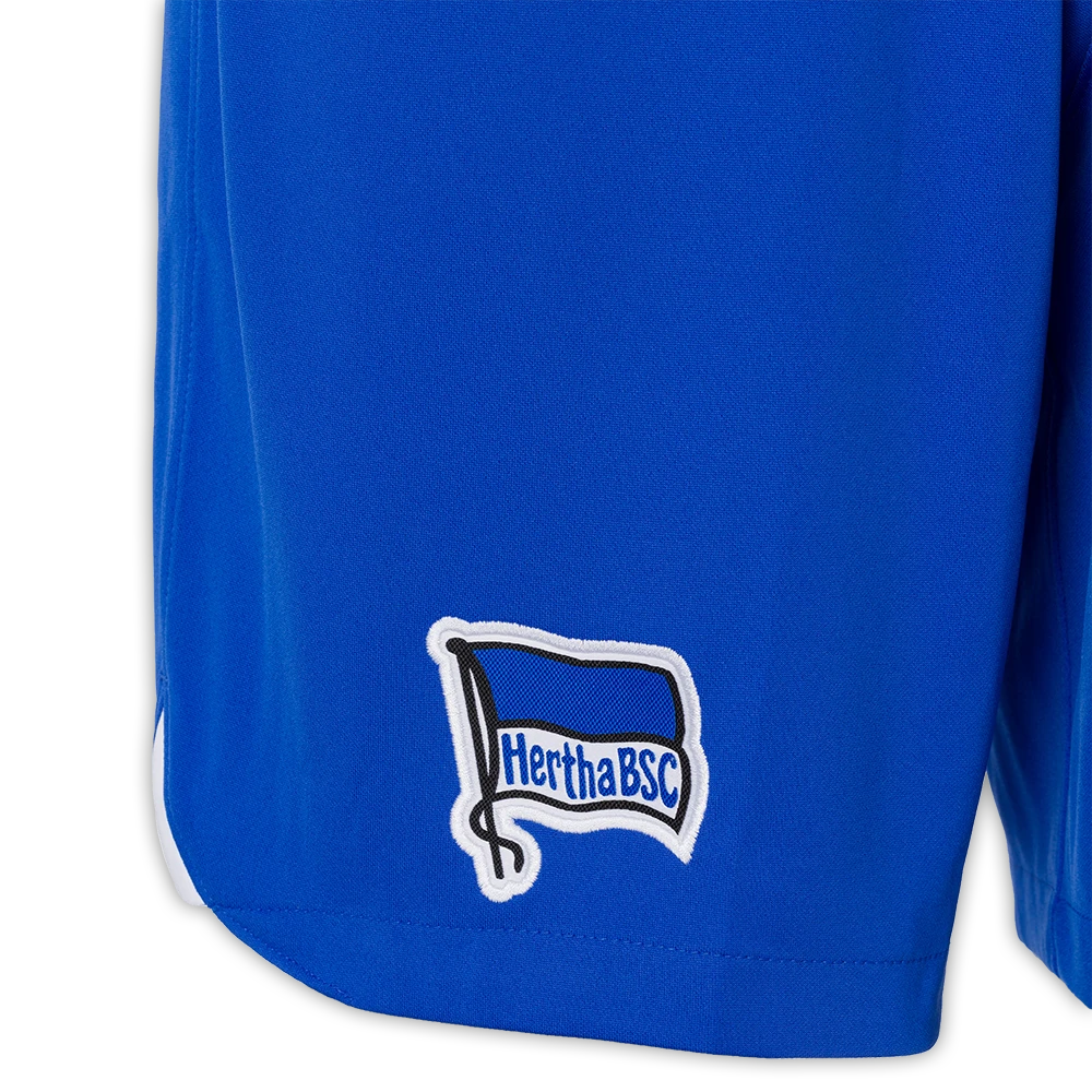 Die Heimshort, passend zum Heimtrikot, besticht durch ihre Funktionalität und ihrem Design. Auf der linken Seite befindet sich das Nike Swoosh und auf dem rechten Hosenbein das Hertha BSC Logo.