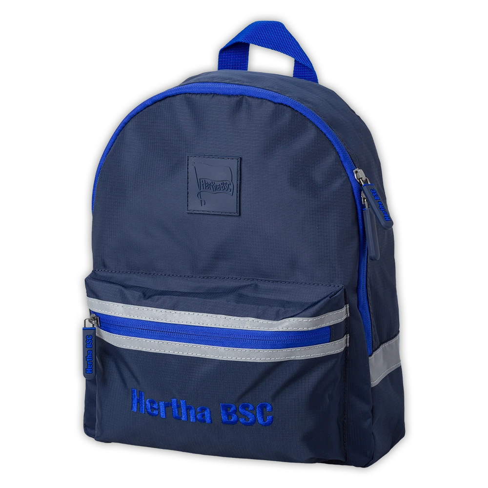 Zusammen schultern wir fast alles. Hierbei hilft dieser Hertha BSC Rucksack in Navyblau. Für unsere Kids mit praktischen Reflektorstreifen an der Front und an den Seiten.