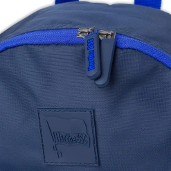 – großszügiges Hauptfach mit blauen Reißsverschlüssen und navyblauen Micro-Zipper-Pullern