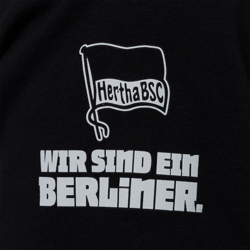 Das T-Shirt mit dem Motto „Wir sind ein Berliner“ besticht durch seine schlichte eleganz trotz sportlicher Linien.