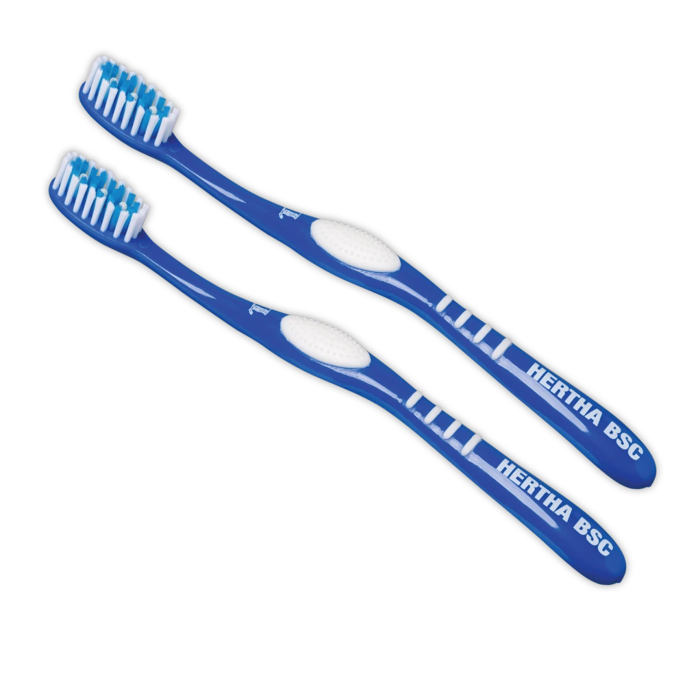 Egal, ob früh am Morgen, zwischendurch oder abends. Mit dieser blau-weißen Zahnbürste putzt du gleich doppelt so motiviert deine Zähne.