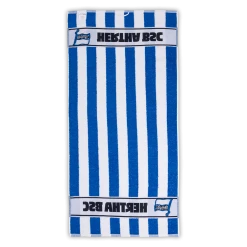 Jetzt bekommst du blau-weiße Eleganz in dein Badezimmer. Das Design in unseren Vereinsfarben zeichnet dieses hochwertige Duschtuch aus. Die blau-weiße gestreifte Optik macht das Duschtuch zu einem echten Hingucker. Dein perfektes Accessoire für dein Badezimmer.