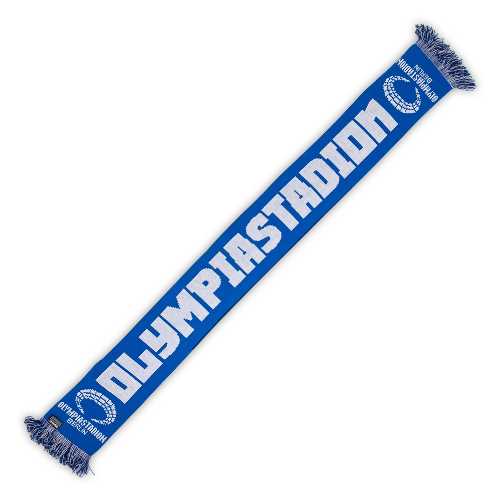 Dein Fanschal zu unserer Heimspielstätte, dem Berliner Olympiastadion. Auf der einen Seite der HERTHA BSC Schriftzug und auf der anderen Seite ´Olympiastadion´.